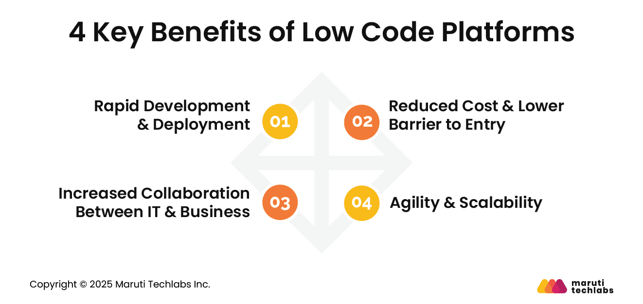 Low-code platforms offer a powerful way to accelerate development, reduce costs, and enable cross-functional collaboration while still supporting enterprise-level scalability.